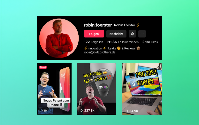 Robin Förster ist strategischer Impulsgeber für Unternehmen, Online Händler, Lehrbeauftragter und ehemaliger Tech-Influencer mit über 100.000 Followern – mit Schwerpunkt auf TikTok, Reels und Shorts. Als Social Media Manager großer Marken und Online-Händler verbindet er Reichweite, Performance und E-Commerce-Praxis.
